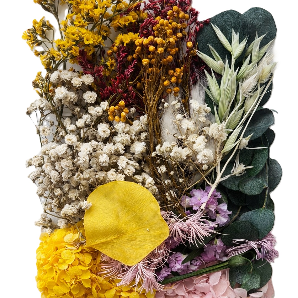 - Τα αποξηραμένα λουλούδια μας ξεχωρίζουν για τη φυσική τους ομορφιά, την ανθεκτικότητα και τη μεγάλη διάρκεια τους — διατηρούν το χρώμα και τη μορφή τους για περισσότερο από έναν χρόνο χωρίς να ξεθωριάζουν.