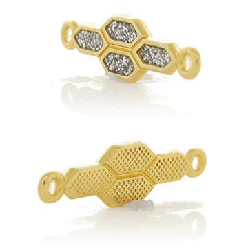 Μοτίφ 4 εξάγωνα με 2 κρικάκια 24k, 26x7mm