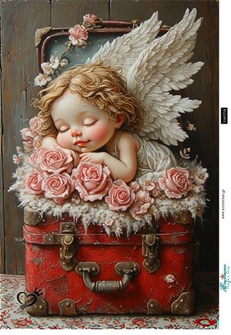 Ριζόχαρτο για Decoupage, Αγγελάκι σε κόκκινη βαλίτσα, 32×40εκ