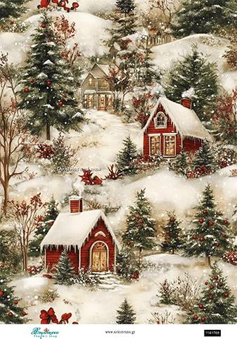 Ριζόχαρτο για Decoupage, Χωριό στα χιόνια, 30×40εκ