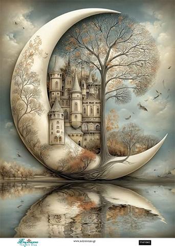 Ριζόχαρτο για decoupage, Φεγγάρι με σπιτάκια, 30×42εκ