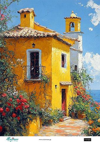 Ριζόχαρτο για decoupage, Κίτρινο σπίτι, 30×42εκ