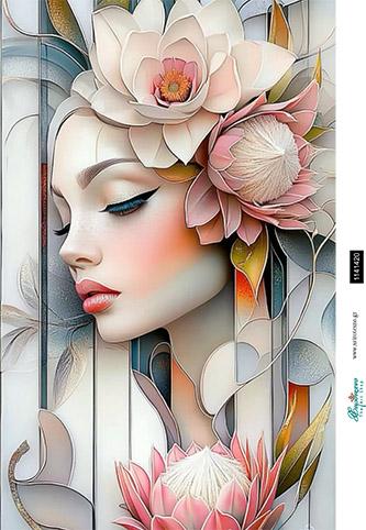 Ριζόχαρτο για Decoupage, Κορίτσι με ροζ άνθη, 30×40εκ