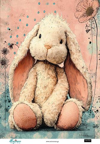 Ριζόχαρτο για Decoupage, Λούτρινο κουνελάκι, 30×40εκ
