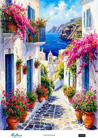 Ριζόχαρτο για decoupage, Νησιώτικο τοπίο, 30×42εκ