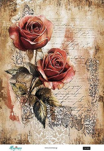 Ριζόχαρτο για decoupage, Vintage λουλούδια, 30×42εκ