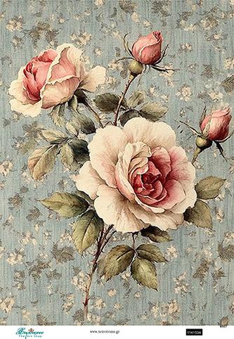 Ριζόχαρτο για Decoupage,Τριαντάφυλλα ρομαντικά vintage, 30×40εκ
